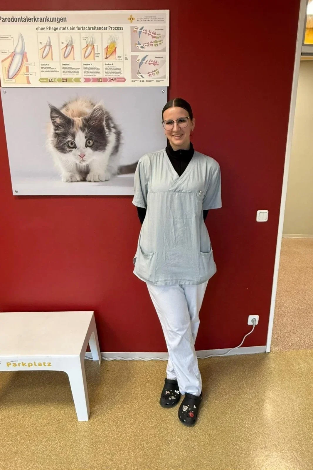 Ich arbeite super gern in der Tiermedizin, weil jeder Tag anderes ist und ich es liebe ,unseren tierischen Patienten zu helfen.
